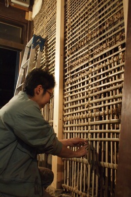前日は夜遅くまでラチ現場主任とタダ棟梁がもくもくと竹小舞編み&柱納めに励んでくれていました…。