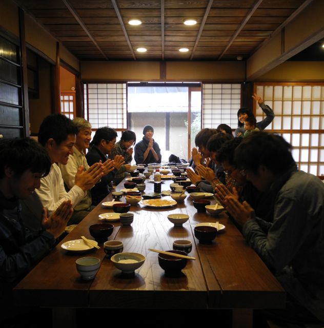 みんなで餅をこねこねして丸めていきます。なんだか中世のピーターブリューゲルの絵のような風景ですね。いいもんです。餡も炊いて、白餅と餡餅とをつくります。丸くつくるのに失敗すると、食べていいという規則があります。失敗が美味しいんです。