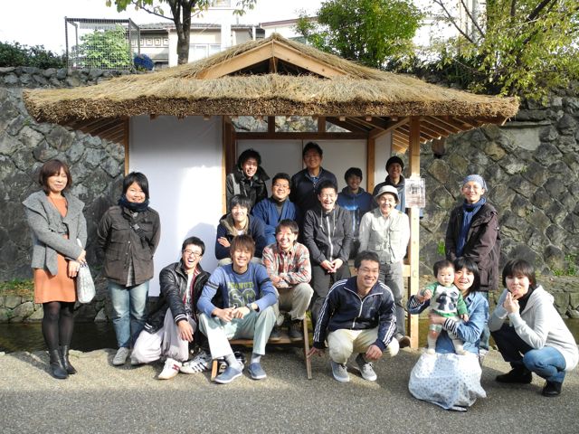 食後、片付けをして、ご近所にお餅を配り、皆で堀川遊歩道のお茶室の前に集合。