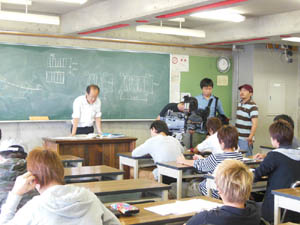 すでに建築現場で働いており、ステップ・アップのために夜間部で学ぼうと決意したとのこと。1年生の設計製図や2年生のRC造の授業の様子をご覧いただき、熱く講義をする教員の姿や黙々と学ぶ学生の姿をみて、「来年にはここで学んでいたい」と言ってくれました。