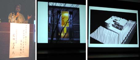 二人の建築家に続いて、前田先生ご自身の設計された住宅作品をいくつか紹介されました。ルイス・カーンの建築から学ばれたことが具体的にどう生かされているのか、もっとゆっくりスライドとお話を詳しく伺いたく思いました。
