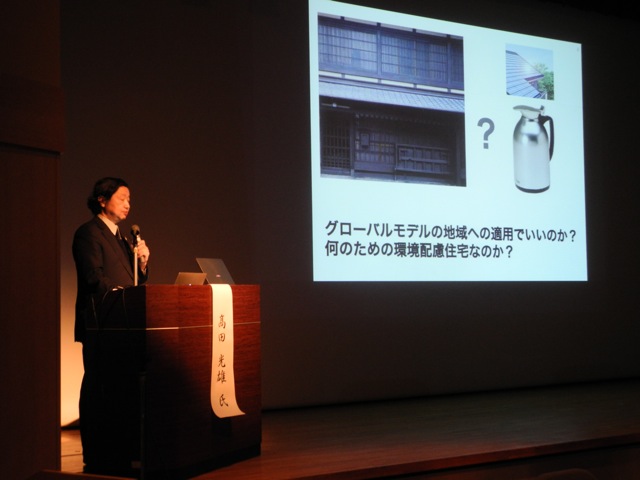 最初に、平成の京町家の理論構築をされている京大の高田光雄先生から、基本的なコンセプトの説明がありました。
