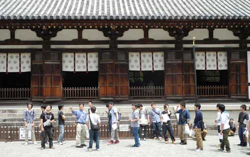 上の写真は唐招提寺の南大門および金堂での説明風景です。建築史や演習で学んでいる古建築の細部意匠などを目の当たりにできます。