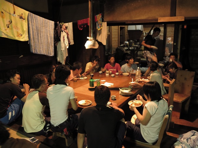 食後、勉強する者、ゲームをする者、大声で飲んでいる者、図面をチェックする先輩、