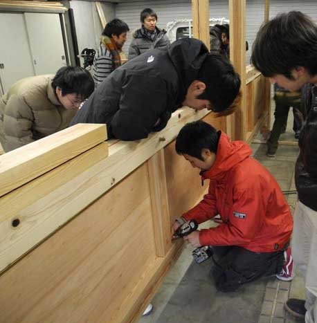 すでに全員がグループで土壁の耐力実験を経験しているので、慣れたもの。