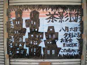 商店街の中の元酒屋さんの空き店舗を借りて、お茶席と、影絵を利用したお芝居の2つのイベントをすることに。お茶部メンバーを中心に頑張るぞ!