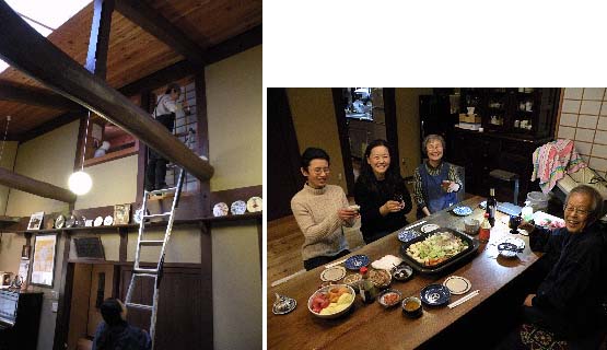 照明器具も調整して、作業終了!すぐにご夫妻が夕餉の支度をしてくれました。ご自慢の手作りの食器に、手作りのご馳走、美味しいとっておきのワイン!すっかりご馳走になってしまいました。ご夫妻はお二人とも中学校の先生だったそうで、若い学生が来る恒例の大掃除を楽しみにされておられるとのこと。いつ来ても楽しく温かい気持ちにさせていただけるお二人のお心遣いこそ、なにより嬉しいご馳走です。この家は本当にしあわせですね。また来年、お掃除に参ります。さの先生、卒業しても呼んでくださいねっ。(みやたけ)