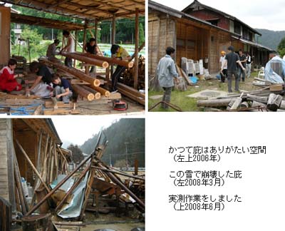 雨が心配された日曜日、何とか晴れて、夏の課外活動 木匠塾2008のための下準備、題して「プレ木匠」を行いました。今年の雪で壊れてしまった庇を制作します。報告はMiki.Tです。よろしく!
