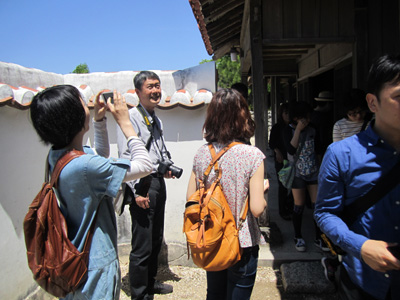 皆を大きなエノキの樹の下に集めて、スケッチの話と記念写真を。