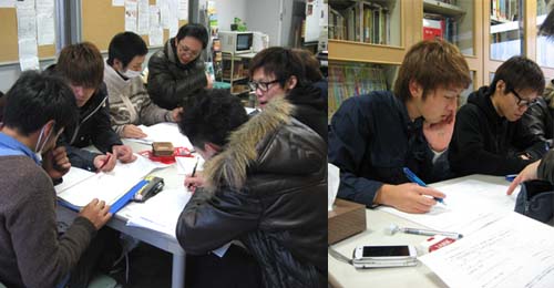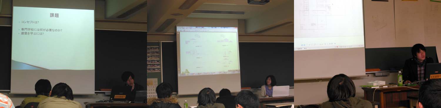 2月初めの火曜、金曜の夜7時から講義室で行われています。これからの建築活動のヒントを得ようと2部1年生や昼間部1年生達も参加しています。