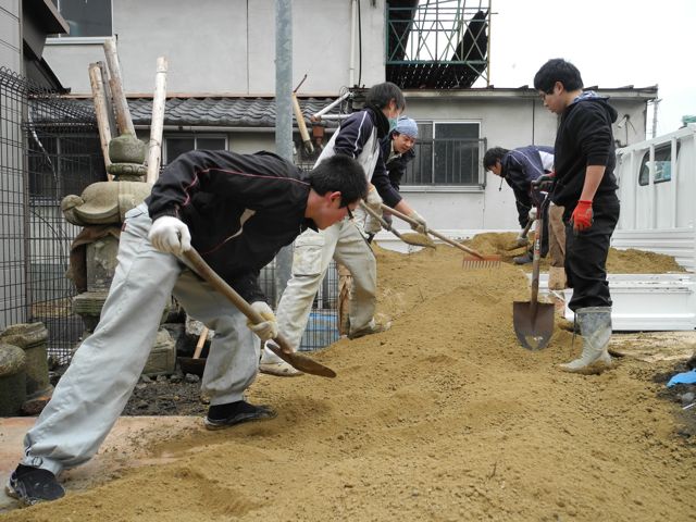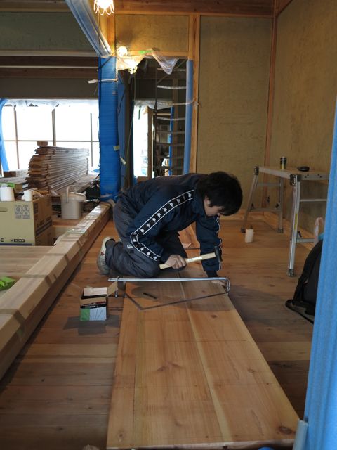 岩本君が一生懸命、型枠をこしらえてくれています。これをいい加減にやられると、後でトラブルが発生すること請け合い、几帳面な彼の性格に期待です。がんばれ!