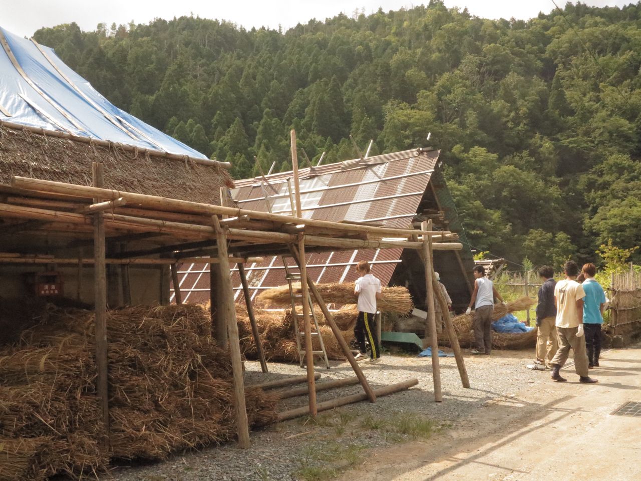 去年もやった大野町の茅葺き、続きをさせてもらっています。明日は朝から地元小塩の上松(あげまつ)の準備に参加、夜に投げたい松神事に参加するので、茅葺きは今日が最後です。