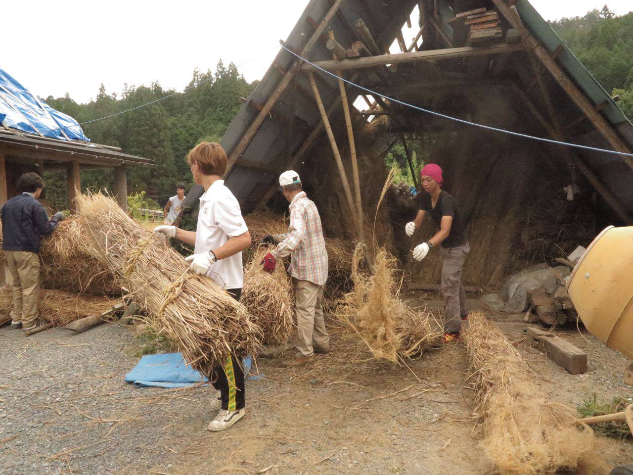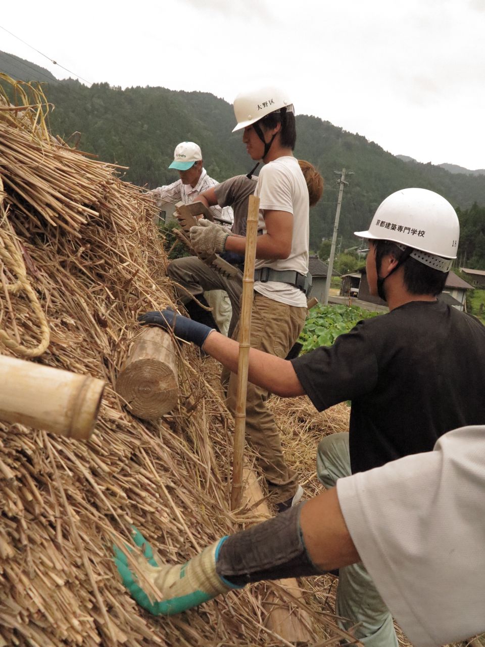 1年のイデです。後半からは2年生と一緒に大野町にあるNPO鉾杉塾さんの茅葺きのお手伝いをします。去年の木匠塾で今の2年生の先輩たちが頑張って半分ほどやってくれたものを、今年、棟まで仕上げる予定です。