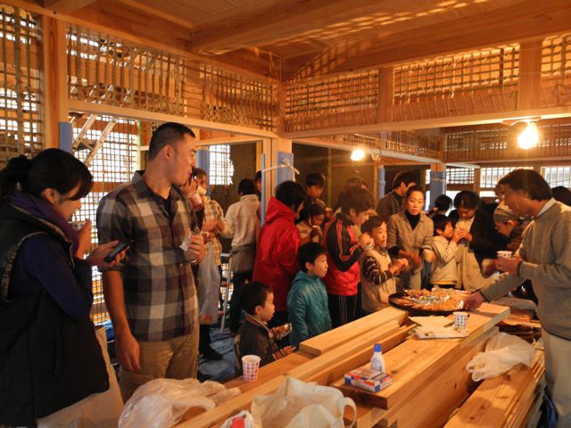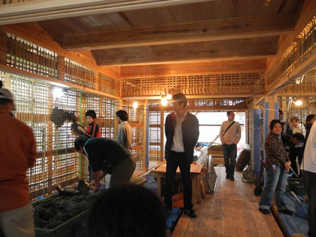 11月11日は荒壁塗りイベントの日。もっとも多くの方々が参加してくれるこの日だけが大雨とは。にもかかわらず、大勢の参加の方々が壁を塗りにお越しくださいました。