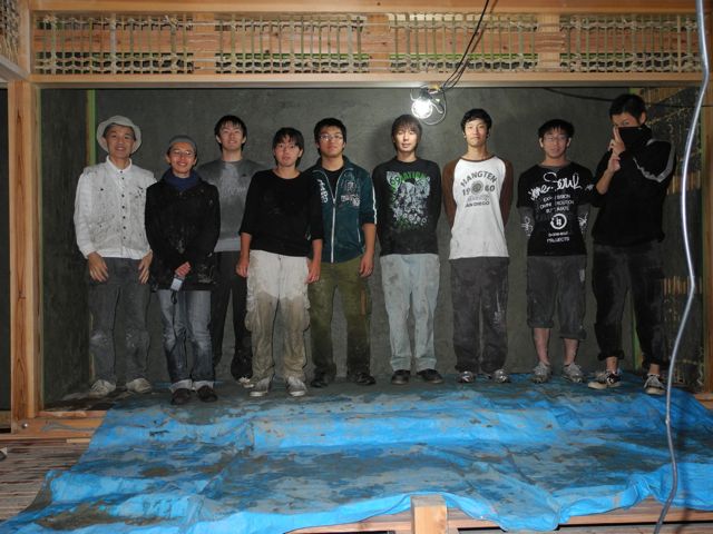 まだまだ塗りたそうな後半の方たちにも時間が来て、終わってもらいました。みなさん、ほんとうに一生懸命塗っていただいたおかげで1階の半分強の壁が塗れました。おつかれさまでした。