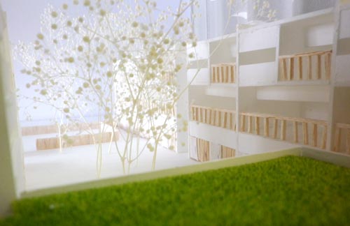この課題に取り組みながら京都建築スクールに参加し、京都市内の現状や、未来の京都について考えてきました。その中で、現在一般化している集合住宅のカタチは京都には似合わないのではないかと思いました。