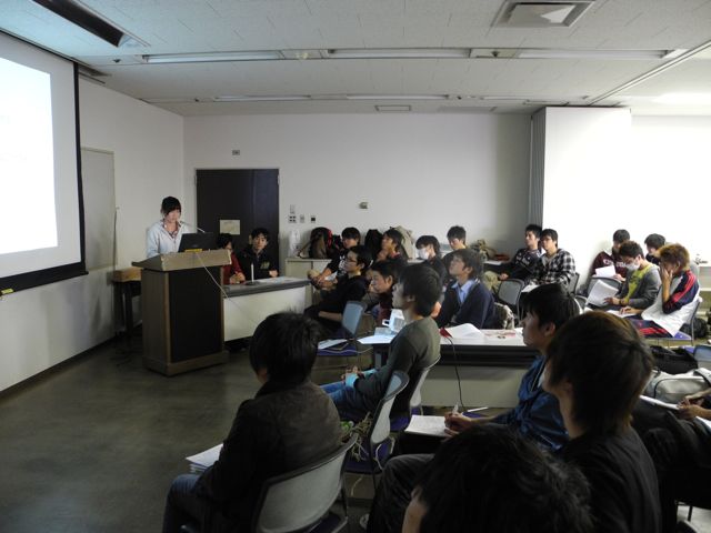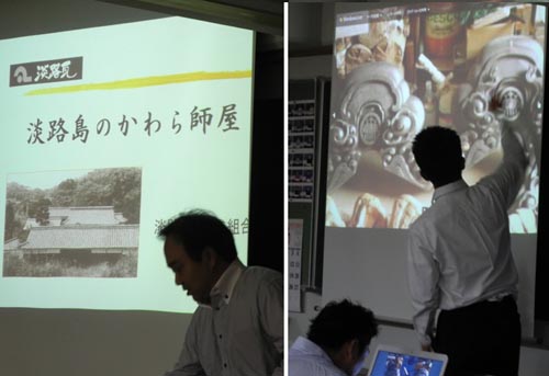 毎年のようにこの建築概論でミニレクチュアを提供していただいている京都府瓦工事協同組合青年部さん、今年は淡路の瓦メーカーさんによる瓦知識、そして工事についてお話いただきました。