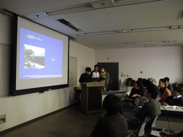 以上、6チームの発表を、全員で採点、評価。2年担任の菅原先生、福田校長から感想やコメントをいただいた。とくにこの日の発表でもっとも好ましかったチームとして、No.6 の茅葺き1年生チームが選ばれ、グランプリを獲得した。 みなさん、よく頑張ってくれました。お疲れさま。 (さの)