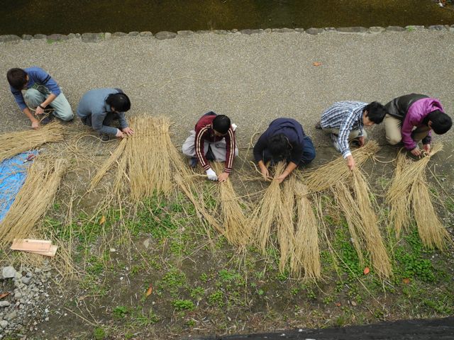 稲藁編み風景