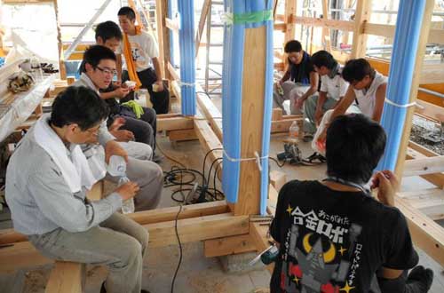 3時のアイスの時間です。暑い中での作業なので、とくに屋根の上で作業しているチームの水消費量は半端ないです。クーラーボックスを用意して、がぶがぶ飲んでもらっています。3時のおやつには、菓子よりも氷アイスがいいです。でも、みんな高校時代のクラブ練習で暑い中での過ごし方は知っているので、ほとんど心配は不要。食欲も落ちていません。そうそう、皆でいただくお昼の中華レストランが敷地の一角にあります。今度はそこの話もしましょう。