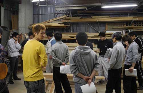 1年生のヒラヤマです。二年生の先輩たちが連日遅くまでがんばっている姿に引かれて、ときどき作業場を覗きに来ています。みんなカッコいいっす!今日は何でもプロ大工先生が来られるというので、1年生4人、夕方6時半に出直して来ました。オオイレアリという床梁を納める仕口の説明ということだそうです。2年生たちが細かいこと聞いているみたいですが、よくわかりませんでした。ごめんなさい!