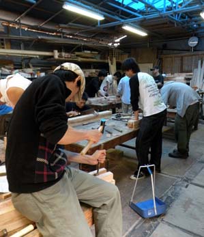 梅雨に入った京都は蒸し暑い日がつづきます。建築科1年のク~です。週に一回木工の実習授業があるんですけど、そりゃもうたいへん。でも、ノミを金づちで思いっきりたたいとったら、けっこうストレスになりマス。町家校舎の作業場は、がんがん音はすごいし、ホコリは立つし、蒸し暑いし、まったく世界が違うんです。もう馴れたけど、これからもっと暑くなったら、...ひからびそう。