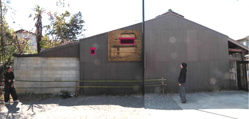 赤いのが二つの窓 町家東面にこんな風に入るらしい