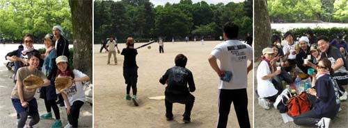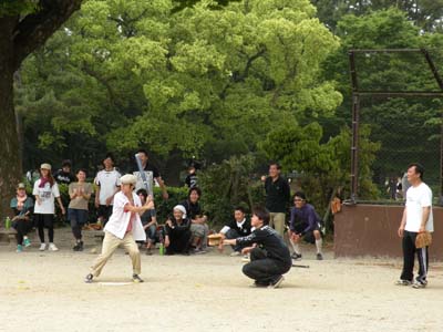 5月は恒例のソフトボール大会。御所のグランドに昼と夜間の学生たちが集まりました。陽射しはつよいけれども、ときおり雲に隠れていい感じ。ここちよい5月の風もあって、木陰ではほんとに気持ちがいい日和です。