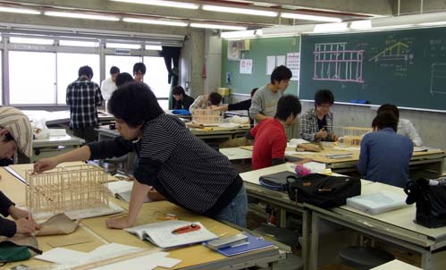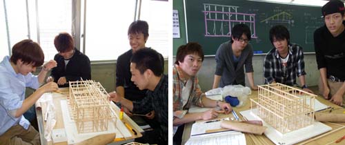 グループごとでの模型作りはいろいろと悩みもありますが、建築ってそんなものです。ひとりではできません。いろんな人たちの協同作業でなりたっています。リーダーには設計を読みぬく技術力のほかにチームをまとめる力が求められます。楽しくみんなで作業を進められるチームが一番ですね。