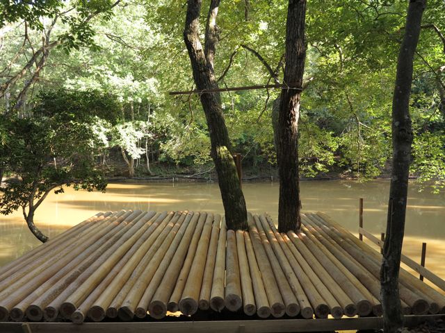 ツリーハウスの下になるデッキが完成です。池に望むステージができあがりました。いい感じです。次はこの上にツリーハウスを載せる上のデッキをつくります。完成まであと2年かな。