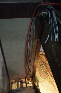 作業中の電気屋さんに聞いてみると、インターネットやエアコン、照明のスイッチなど図面どおりにするとこんな量になるそうです。