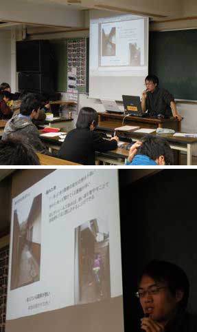 建築科1、2年合同の「建築概論」授業では2年生の9つのチームによる研究発表が各回で行われていますが、12月8日はチームカネモトによる「私の好きな道」というテーマの発表がありましたので、報告します。