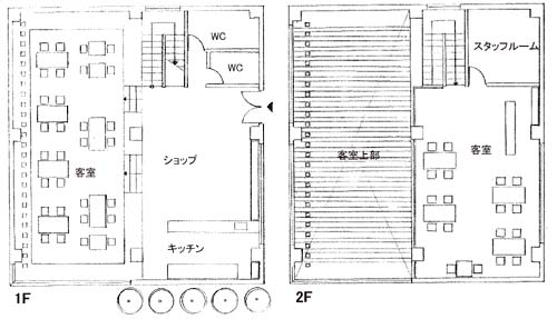 サノ: もともとの建物をそのまま用いて、うまく空間をつくっていますね。構造体を木製の柱梁を格子状に入れることで、大きな吹抜け空間の深さを演出しています。実際には、格子がやや重たい感じがあるでしょう。倉などで床梁をそのまま残して床板だけを抜いたものをよく見ますが、却ってそのくらいのピッチで梁が並んでいる方がいいのかもしれません。一番の問題は、上を抜いた空間を見せることと、一段揚げたステージとの関係にあるでしょう。わざわざ一段揚げる必要があるのかどうか、格子との関係をもう一度、よく見直してみて欲しいと思います。