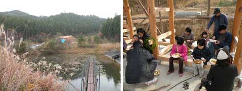 最後は工事中の研修棟をバックに記念写真です。子どもたちも目いっぱい遊んだから、疲れたことでしょう。今回のイベントは、もともと子ども連れの家族をターゲットにということで企画されたようですが、大人たちの方が多く、子どもたちにはちょっとハードだったような気がしました。もう少し子どもたちをたくさん呼んで、子どもたちと一緒に遊べる内容でまたやって欲しいです。来年からは研修棟もちゃんと使えるしね。みなさん、お疲れさまでした!