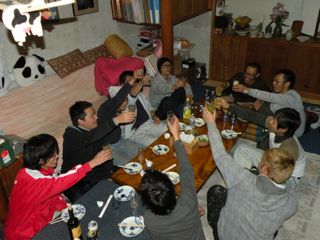ということで、サノ先生の家で打ち上げパーティです。奥さまの美味しい料理を片端から平らげて行きます。大阪で試験をしていたガキさんもやや遅れて到着、また乾杯!とっても充実した週末でした。