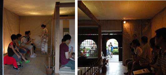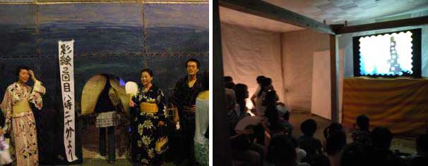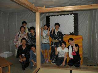お客さんが途切れた所でお茶席は終了~。急いで30分後に行なう影絵の準備をします!