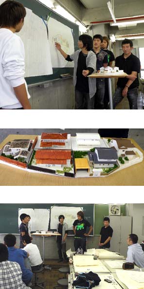 結果として、今回の課題は、「模型を見る限りは、予想に反して成功した」と感じている。実際に建つと、素材の質感などの印象で、当然違う雰囲気に変わるに違いないが。実験的に、もっとバラバラの住宅、例えば一軒は和風、一軒はヨーロッパ風、一軒は東南アジア風などまったく統一感のないものをならべても面白かったかも知れないと思う。(リーダーカネモト代理ナカちゃんでした!)