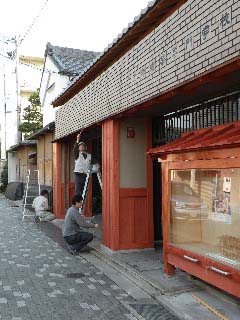 3月5日、1年のヒラです。東寺町家初参加です。何でも裏返し塗りをしているんだそうだ。土を塗るのは汚れるけど、何か楽しい。♪もう塗る所ないの?まだ乾かないので、もうしばらく後で塗り重ねることに。縁側のひどく傷んだ壁をちゃんとしようと、壊してみたら、シロアリにやられていて、どんどん崩れて、全部壁がなくなっちゃった。いいのかな〜?