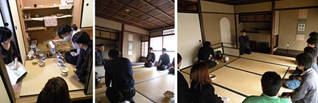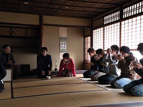 二席目は、人数も少なく、落ち着いた雰囲気でいただけました。当初の予定では、次回に御所にある拾翠亭というお茶室で茶事演習を行うと聞いていましたが、日程の都合が合わず、残念。来年ぜひやりたいものです。(あ、留年しないとだめか!)もう少し時間をかけてゆっくりひとりひとり指導してもらえるといいですね。キリサコ先生には、もっと脇にゆとりをもって所作につとめるよう助言をいただきました。ありがとうございました。 (大工志望のオサキでした)