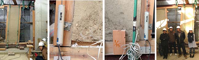 年が変わり、3グループの最後に試験体A、石膏ボードに中塗土を塗った耐力壁の水平加力実験を行いました。リーダーのミヤタケです。よろしくお願いいたします。期待としては、石膏ボードに石膏プラスターを塗った壁(試験体C)よりも、粘りがあるのではないかというものですが、さてどうでしょう。