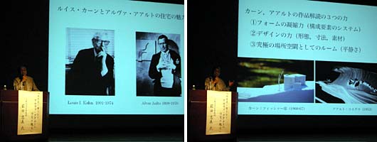 二人の建築家に続いて、前田先生ご自身の設計された住宅作品をいくつか紹介されました。ルイス・カーンの建築から学ばれたことが具体的にどう生かされているのか、もっとゆっくりスライドとお話を詳しく伺いたく思いました。