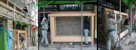 掲示板の作業も進められ、難しいポストが付きました。後は表のガラス戸や内部の照明器具の工事が残っています。前を通り行く人たちも興味深そうに覗いて行きます。(さの)