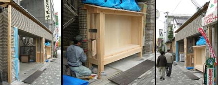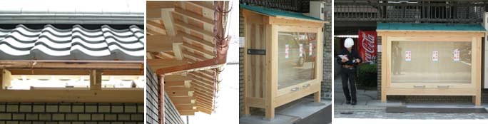 掲示板は当初から学生の手では難しいと判断し、工務店に依頼していましたが、デザインの決まらぬ板屋根と破風だけを学生で行なうとし、そこまでの箱をプロに拵えてもらいます。流石にプロ、きちんと仕事をします。学生よりも腕がいいのは言うまでもないけれども、はるかに丁寧に手をかけますから、それはいいものになるわけです。こんな仕事ぶりを学生たちにしっかり見て欲しいと思うのだけれども、悲しいかな、誰もいません。