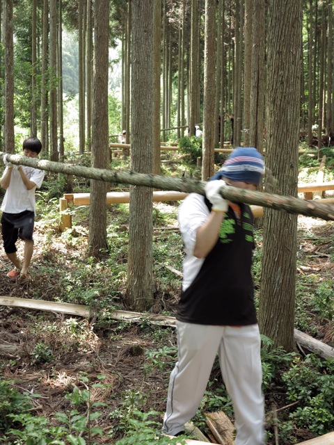 これを何にするかというと、皮を剥いて、足場丸太にします。