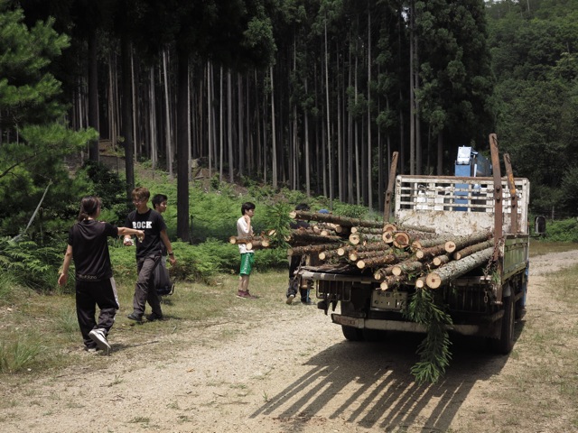 木匠塾2日目はさっそく、山に行って杉を間伐しました。