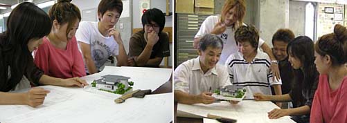 建築科1年の前期課題も最終日、みなそれぞれの図面と模型を携えてやって来ました。元気な子もいれば、眠そうな子、製図室の隅で必死に模型をつくっている子も。例年、大学卒の作品を取り上げてきましたが、今年は半年前まで高校生だった若い生徒の作品を紹介しましょう。