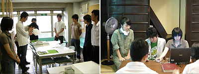 本校舎で学校紹介や作品の展示を見ていただいた後、よしやまち町家校舎にて部・課外活動の説明、