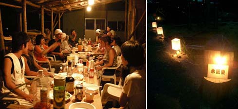 お出迎えするのは、皆で作った灯りの道。「木匠塾」と彫ってある看板は木匠塾棟梁の奥ちゃんが作りました!