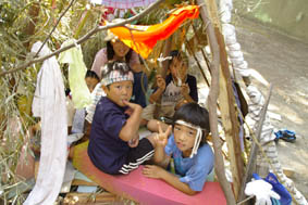 子供たちは、蹲り、腹這いになり、寝転がり、時には跨がり、渡り、飛び越え、額を寄せ、肩を寄せ、膝を突き合わせ、正座します。