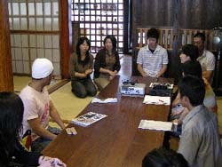 後半はよしやまち町家校舎に会場を移し、上方探索倶楽部、木匠塾などの活動の紹介、町家改修の報告をスライドをまじえて行いました。みなさん、熱心に聞いてくれてありがとう。また来てね!(司会のフータでした。)